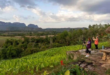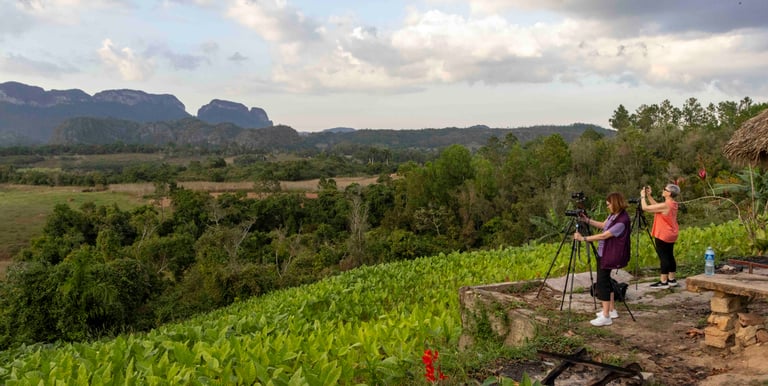 Un día dedicado a fotografiar el paisaje rural de Cuba: mogotes, plantaciones de tabaco y la vida cotidiana de los campesinos. Visitamos fincas tradicionales, miradores y senderos en el valle, buscando la mejor luz para paisajes, detalles y retratos ambientales. Ideal para quienes quieren combinar naturaleza, cultura campesina y aprendizaje fotográfico en un entorno tranquilo.